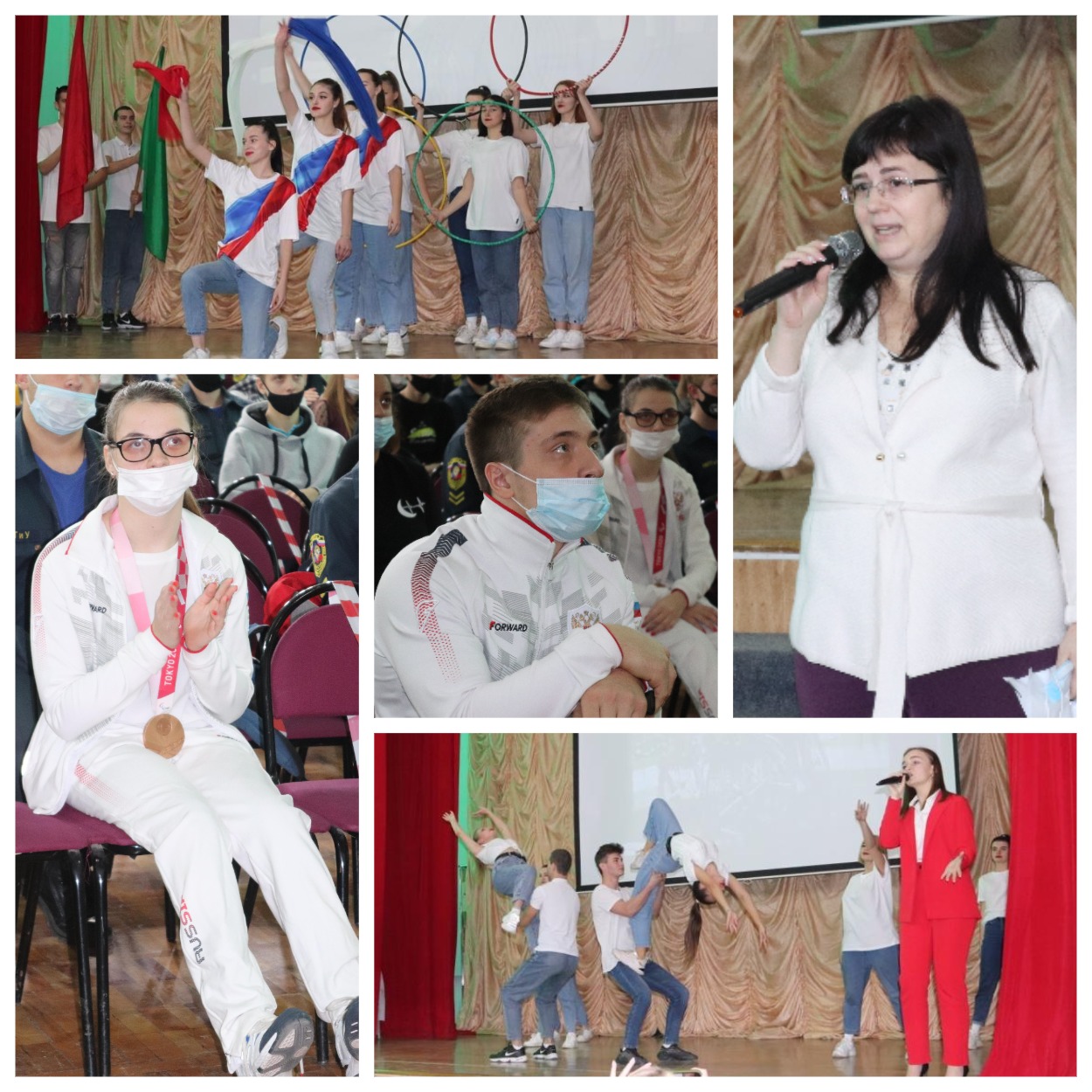 В колледже прошла торжественная церемония чествования призёров Паралимпийских игр в Токио-2021. В родное учебное заведение пришли действующие студенты НКПТиУ Евгения Галактионова и Алексей Чуркин и их тренер Денис Бабак, а также выпускник 2013 года Владимир Свиридов.