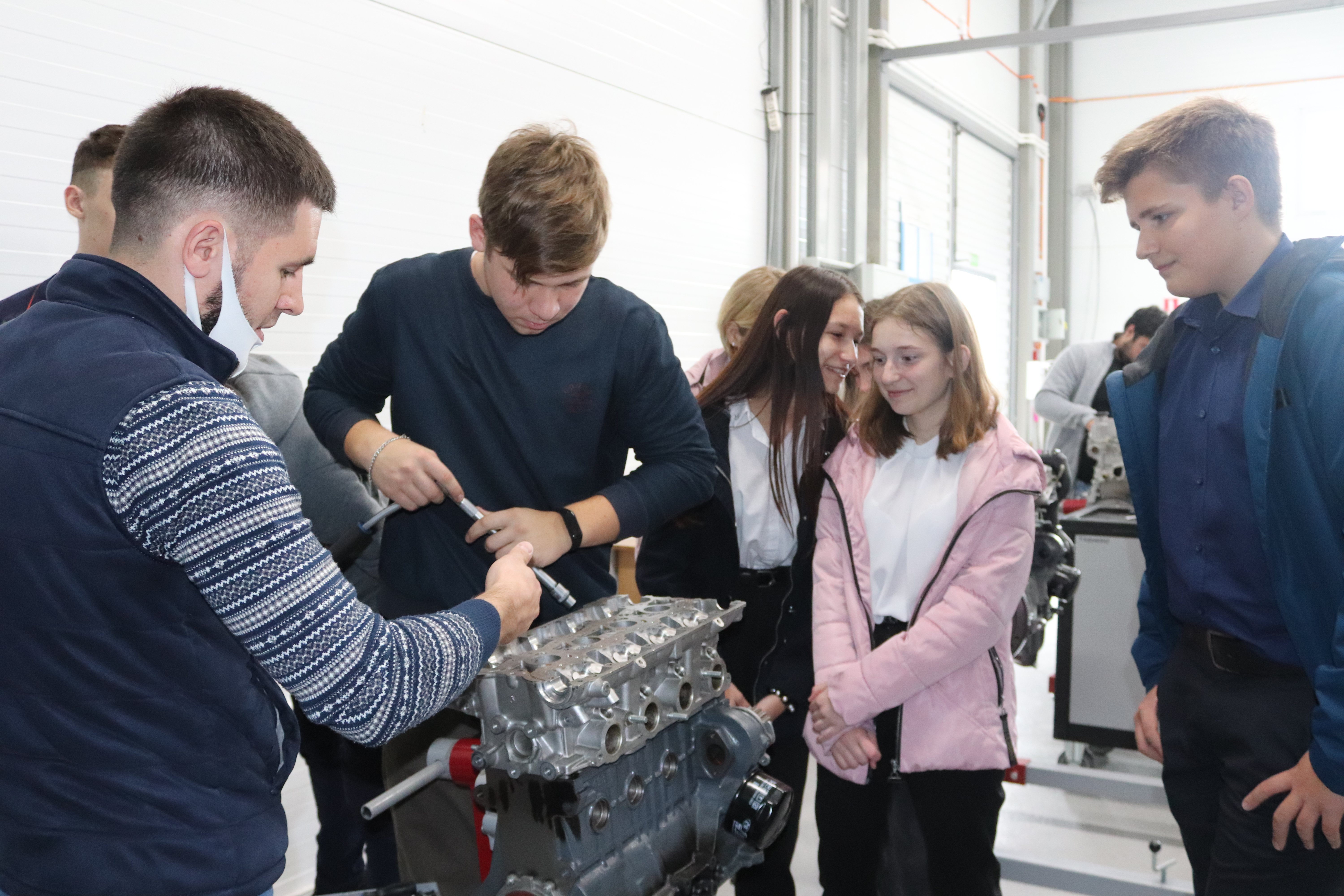 Снять и прикрутить обратно колесо, разобрать-собрать двигатель – как вы уже догадались, профпробы проходили по компетенции «Ремонт и обслуживание легковых автомобилей», в учебных автомастерских колледжа.