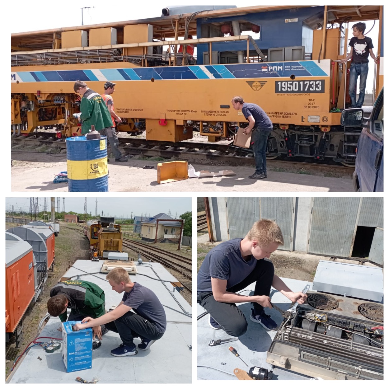Студенты специальности «Монтаж и техническая эксплуатация холодильно–компрессорных машин и установок», проходящие производственную практику на предприятии «Холод плюс», на этой неделе занимались обслуживанием кондиционеров на новочеркасской железнодорожной станции.