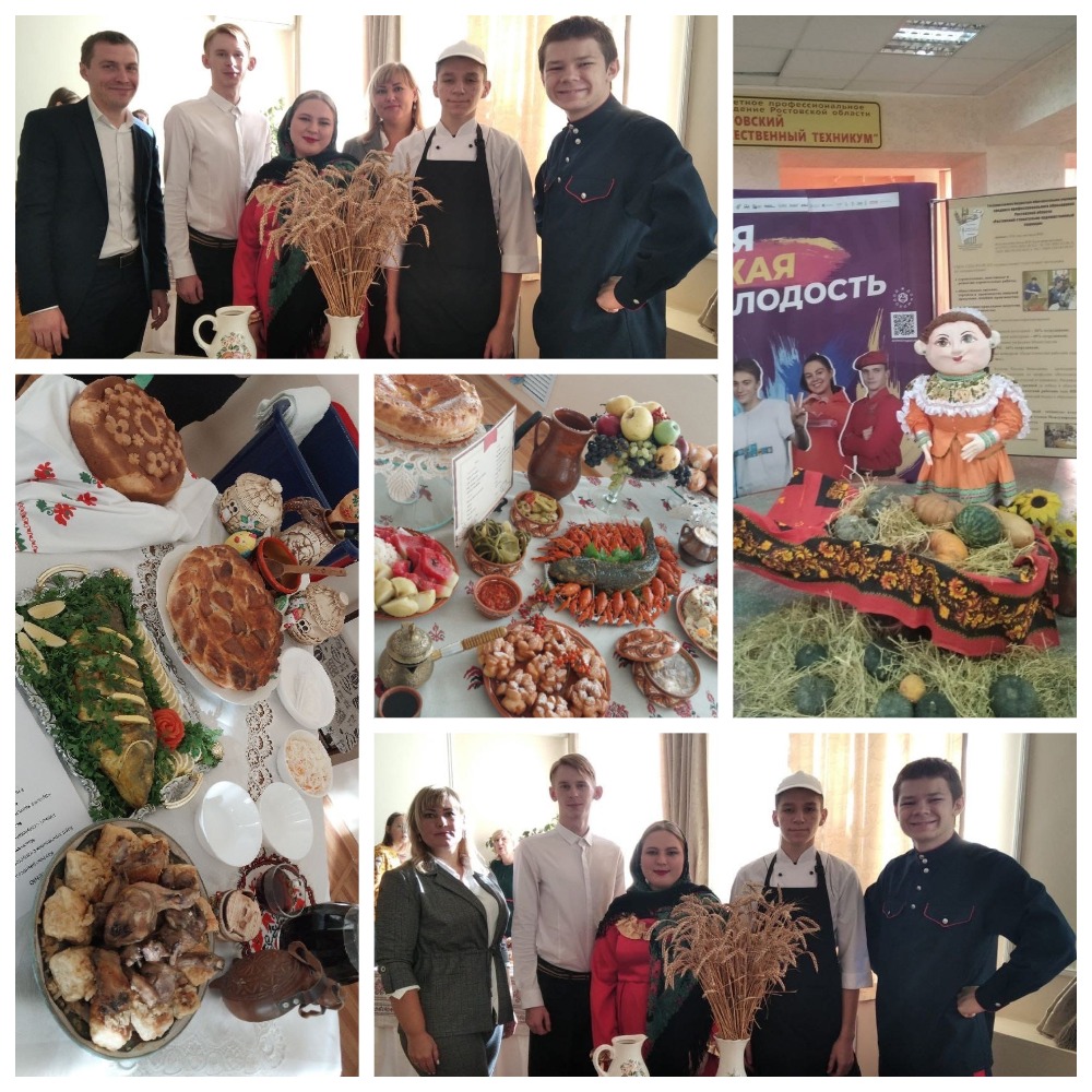 Студенты участвовали в презентации тематических столов национальной кухни и выставке поделок на донскую тематику. Участники оформили стол в казачьем стиле и приготовили традиционные блюда: