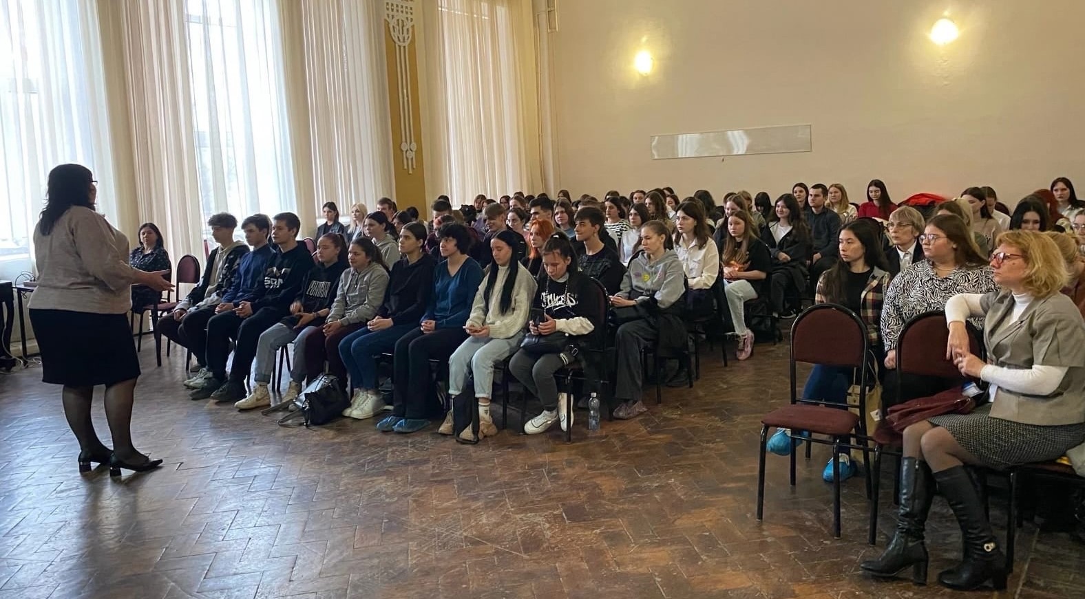 На мероприятии звучали песни военной поры, стихотворения Юлии Друниной и Булата Окуджавы. Ведущие напомнили студентам, насколько важно сохранять память о делах наших предков и о том, через что пришлось пройти нашим хрупким женщинам в годы Великой Отечественной войны.