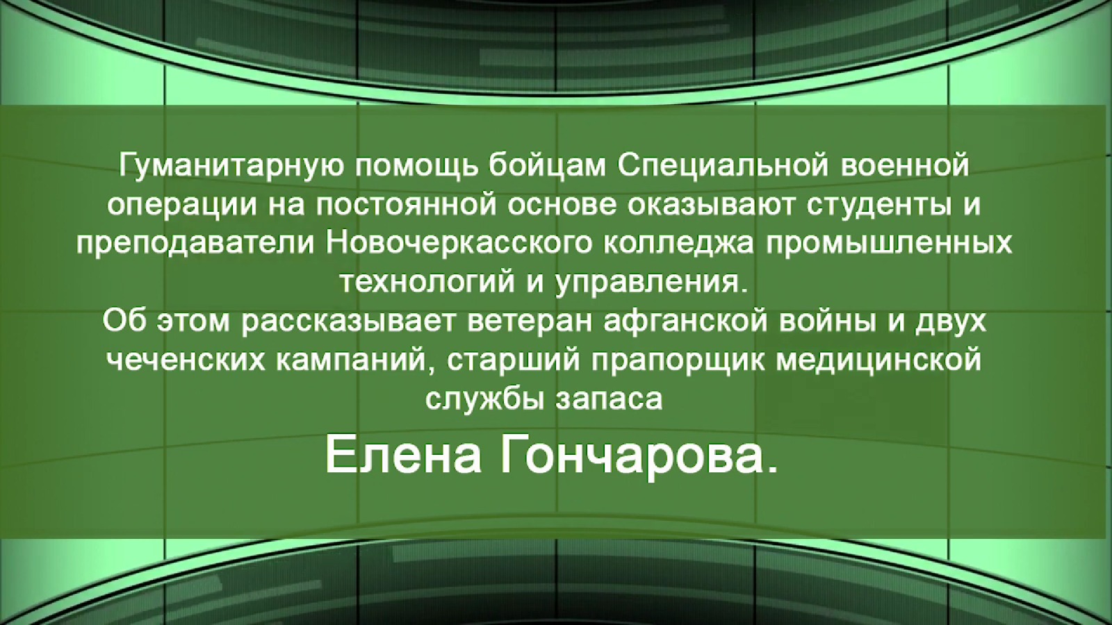 Об этом рассказывает ветеран афганской войны и двух чеченских кампаний, старший прапорщик медицинской службы запаса Елена Гончарова. https://www.youtube.com/watch?v=l_mJ5ChQyb8