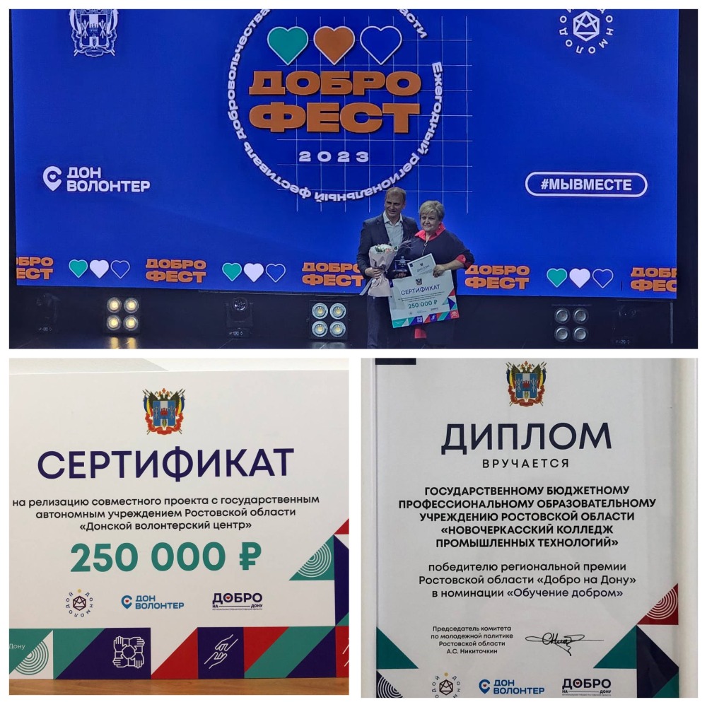 В числе победителей феста оказался Новочеркасский колледж промышленных технологий и управления, ставший призером и обладателем денежного гранта на реализацию проекта совместно с Донским Волонтёрским центром региональной премии «Добро на Дону»