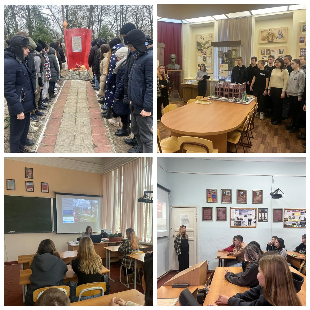 Именно этой славной дате был посвящён урок мужества, который провели преподаватели колледжа Галина Акимова и Ирина Тревога совместно со студентами Валерией Гылка и Ариной Курочкиной.