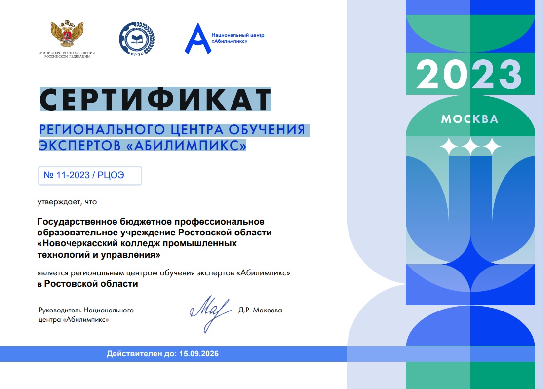 Этот сертификат подтверждает, что колледж соответствует всем необходимым требованиям и стандартам, чтобы быть признанным экспертным центром в области обучения.