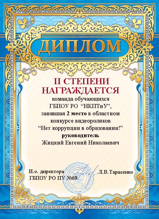 С 1 по 22 декабря на базе ГБПОУ РО ПУ №69 в Волгодонске проходил областной дистанционный конкурс видеороликов «Нет коррупции в образовании!», посвящённый международному дню борьбы с коррупцией.