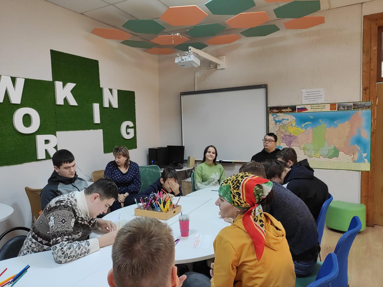 В коворкинг-центре «Улей» педагог-дефектолог Наталья Захарова провела занятие для студентов с ограниченными возможностями здоровья из группы РЗС на тему «Природные зоны России. Явления живой и неживой природы в разных климатических зонах».