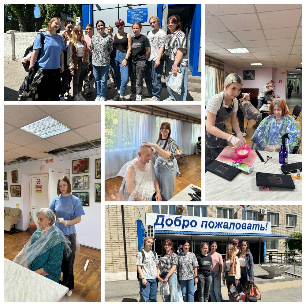 В рамках акции 22 мая третьекурсники специальности «Технология парикмахерского искусства» вместе с преподавателем Натальей Лисиной посетили жителей Новочеркасского дома-интерната для престарелых и инвалидов.