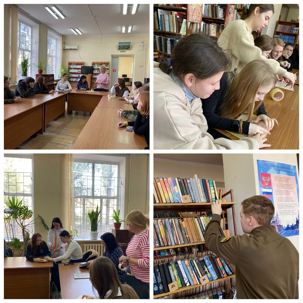 Анна Воробьева совместно с библиотекарем Ольгой Савиной провели мастер-класс для студентов по ремонту повреждённых изданий. В ходе акции студенты активно помогли библиотеке привести в порядок ветхие книги. Ребята с энтузиазмом подклеили издания и выпрямили страницы, внеся свой вклад в сохранение литературного наследия.