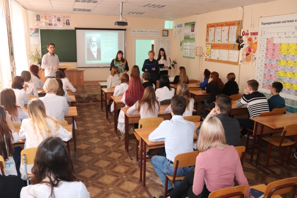 2019 год по инициативе ЮНЕСКО объявлен Международным годом Периодической таблицы химических элементов Д.И. Менделеева. В связи с этим, 14 февраля в колледже состоялось внеклассное мероприятие (конференция) «Закон химической гармонии», посвященное 185-летнему юбилею Д.И. Менделеева и 150-летию со дня открытия Периодического закона. В конференции приняли участие студенты первого курса специальностей «Ветеринария», «Технология продукции общественного питания», «Повар, кондитер». Дмитрий Иванович Менделеев – великий русский ученый, гений и патриот, - оставил огромное научное и педагогическое наследие в области химии, физики, кристаллографии, метеорологии, геологии, экономики, педагогики. Под руководством преподавателей Доценко Е. М. и Марьяш С.В. студенты подготовили доклады об открытии Д.И. Менделеевым Периодического закона и его роли в предсказании еще неизвестных науке элементов, о биографии великого русского ученого, его обширной научной деятельности, разносторонних увлечениях.