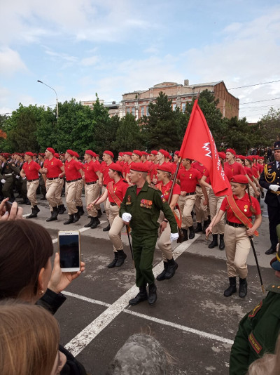 9 мая юнармейцы колледжа приняли участие в параде, посвященном 74-ой годовщине Победы в Великой Отечественной войне. Стройными рядами, чеканя шаг под звуки военного оркестра, ребята прошли по главной площади города. В завершение парада вместе со всеми участниками юнармейцы гордо исполнили легендарную песню «День Победы».