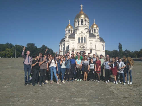 Экскурсовод Инна Бардакова представила студентам столетнюю историю попыток строительства храмов на месте существующего, начиная от закладки первого в 1805 году и заканчивая освящением в 1905 году нынешнего собора. Присутствовавшие побывали в подвалах собора, на императорской ложе и колокольне, с которой открывается прекрасный вид на центральные улицы столицы Донского казачества.
