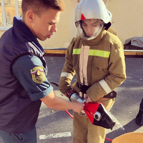 17октября на базе студенческого пожарно-спасательного отряда «ДонСпас» Новочеркасского колледжа промышленных технологий и управления был проведен урок с учащимися МБОУ СОШ № 7 города Новочеркасска. Студенты-спасатели, активисты Всероссийского студенческого корпуса спасателей рассказали ребятам 9 класса о профессии пожарного и спасателя, провели обучающие занятие по правилам оказания первой помощи пострадавшим, а так же организовали экскурсию по расположению, познакомили с техникой и оборудованием используемом при тушении пожаров и проведении АСР. Школьники примерили на себе боевую одежду пожарного и поработали с гидравлическим аварийно-спасательным инструментом, а так же прошли полосу препятствий