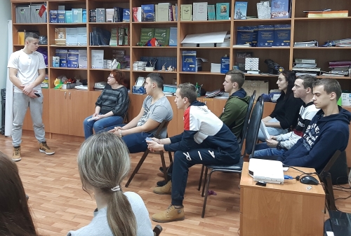 Студенты Новочеркасского колледжа промышленных технологий и управления стали гостями Региональной общественной правозащитной организации Союз «Женщины Дона», где состоялось очередное занятие из цикла «Творческая мастерская «Зеркало Мира». Оно было посвящено предстоящему 75-летию Победы и окончания Второй мировой войны. Студенты подготовили сообщения о нацистских лагерях смерти, о Холокосте, а также о том, что происходило в их родных городах в период Великой Отечественной войны. Во время компьютерной презентации о злодеяниях фашистов классный руководитель Т.Г. Коноплёва рассказала о своих впечатлениях при посещении лагеря смерти Бухенвальд и музея, организованного на его территории. Говорили также о том, что мало помнить войну – нужно прилагать усилия, чтоб любые разногласия решались мирным путём, а не перерастали в вооружённые конфликты и войны. И это зависит не только от глав государств, но и от каждого человека.