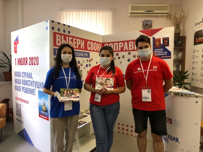 15 июня стартовала масштабная информационная компания «Волонтеры Конституции». Во всех регионах открылись пункты, где можно узнать подробно все о предлагаемых поправках в Конституцию. Почему они важны и как помогут изменить жизнь миллионов граждан страны — об этом всем желающим расскажут волонтеры, среди которых есть добровольцы из нашего колледжа: Ерицян Маруся, Павленко Мария, Хитеева Яна и руководитель Волонтерского центра «Единство» Мамаева Елена Сергеевна Волонтеры Конституции сами уже изучили в деталях суть поправок, готовы ответить на ваши вопросы