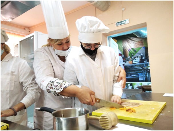 В подготовке к Демонстрационному экзамену участвуют ребята Новочеркасского колледжа промышленных технологий и управления с нарушениями опорно – двигательного аппарата, слуха, нервно – психической деятельности. Ребята обучаются по профессии 43.01.19 «Повар, кондитер». Помогают ребятам подготовить и отработать рецептуры трёх блюд преподаватели и мастера производственного обучения – Быковская Ю. Н. и Сазонова И. В.