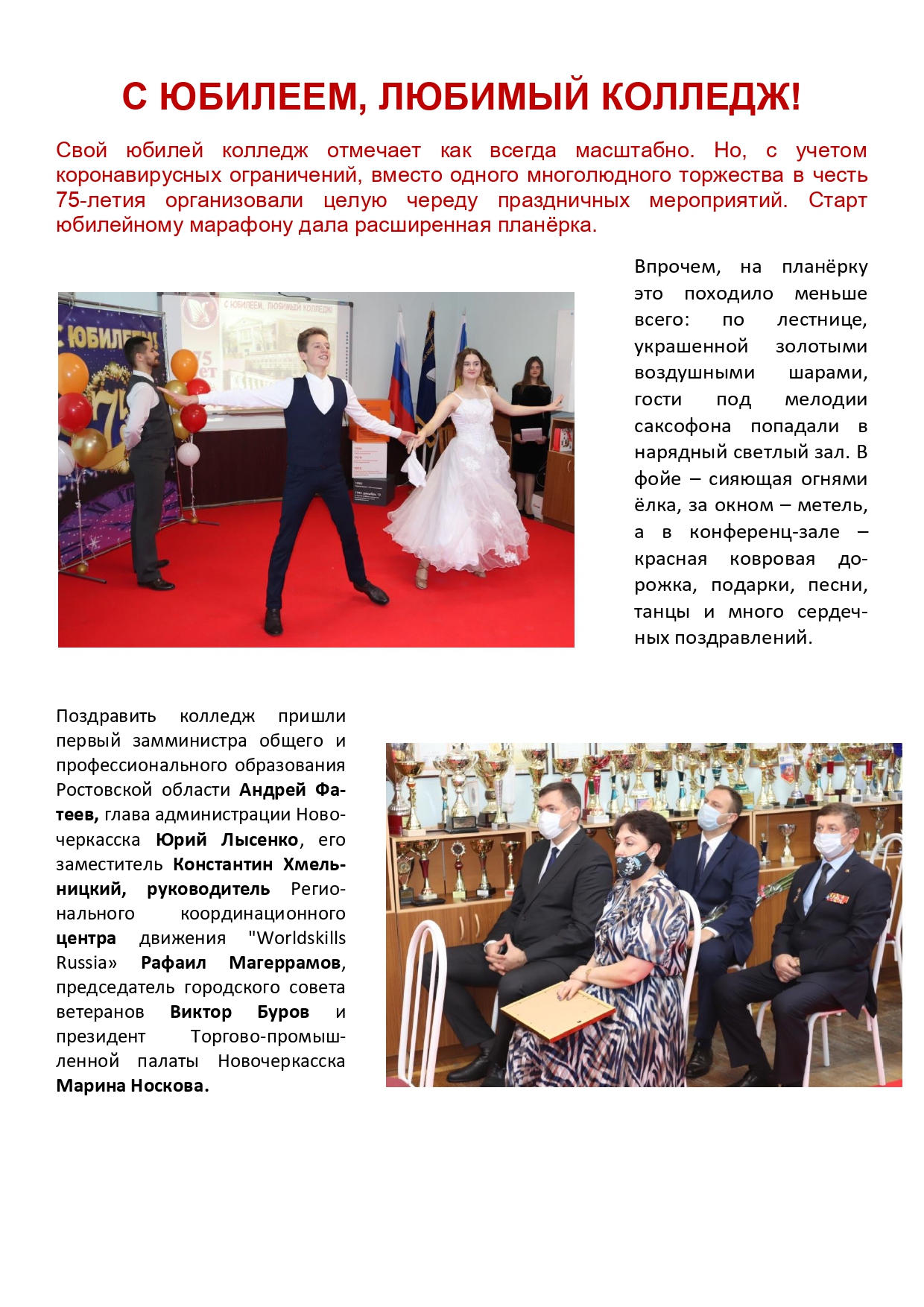 Свой юбилей колледж отмечает как всегда масштабно. Но, с учетом коронавирусных ограничений, вместо одного многолюдного торжества в честь 75-летия организовали целую череду праздничных мероприятий. Старт юбилейному марафону дала расширенная планёрка. ПОДРОБНЕЕ...