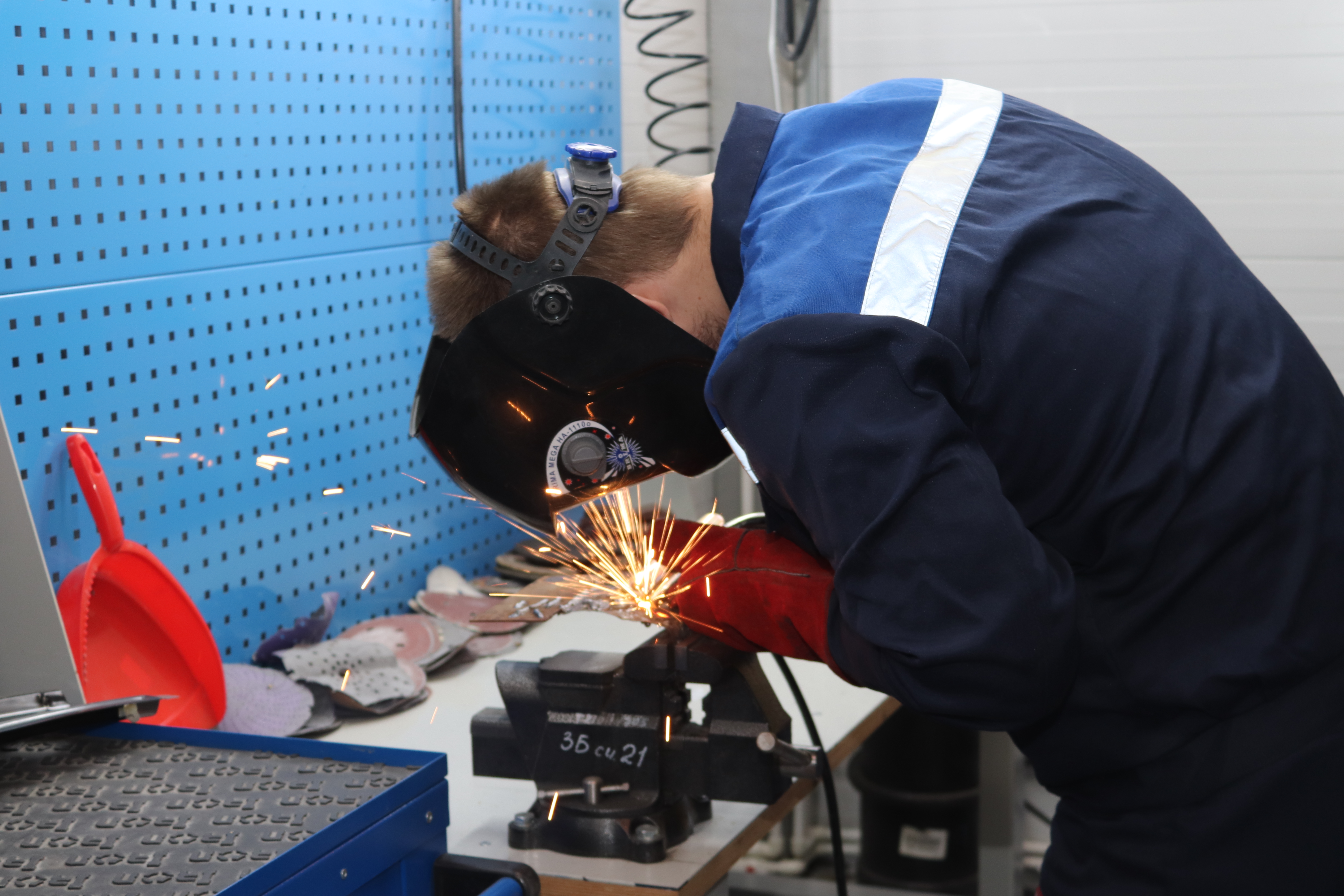 Он разбит на две равные части, по 4 часа. У каждого студента – погнутое с одной стороны и повреждённое с другой стороны автомобильное крыло. Первое задание - ремонт крыла (рихтовка). Второе - замена части неструктурного элемента автомобиля. Каждый студент должен от крыла отрезать погнутую и приварить целую часть.
