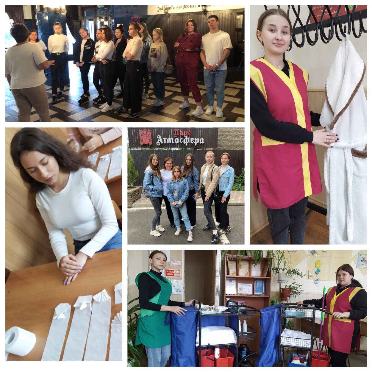 • приобрели навыки комплектации рабочей тележки горничных, складывания махровых халатов, различных фигур из полотенец, заправки постели;