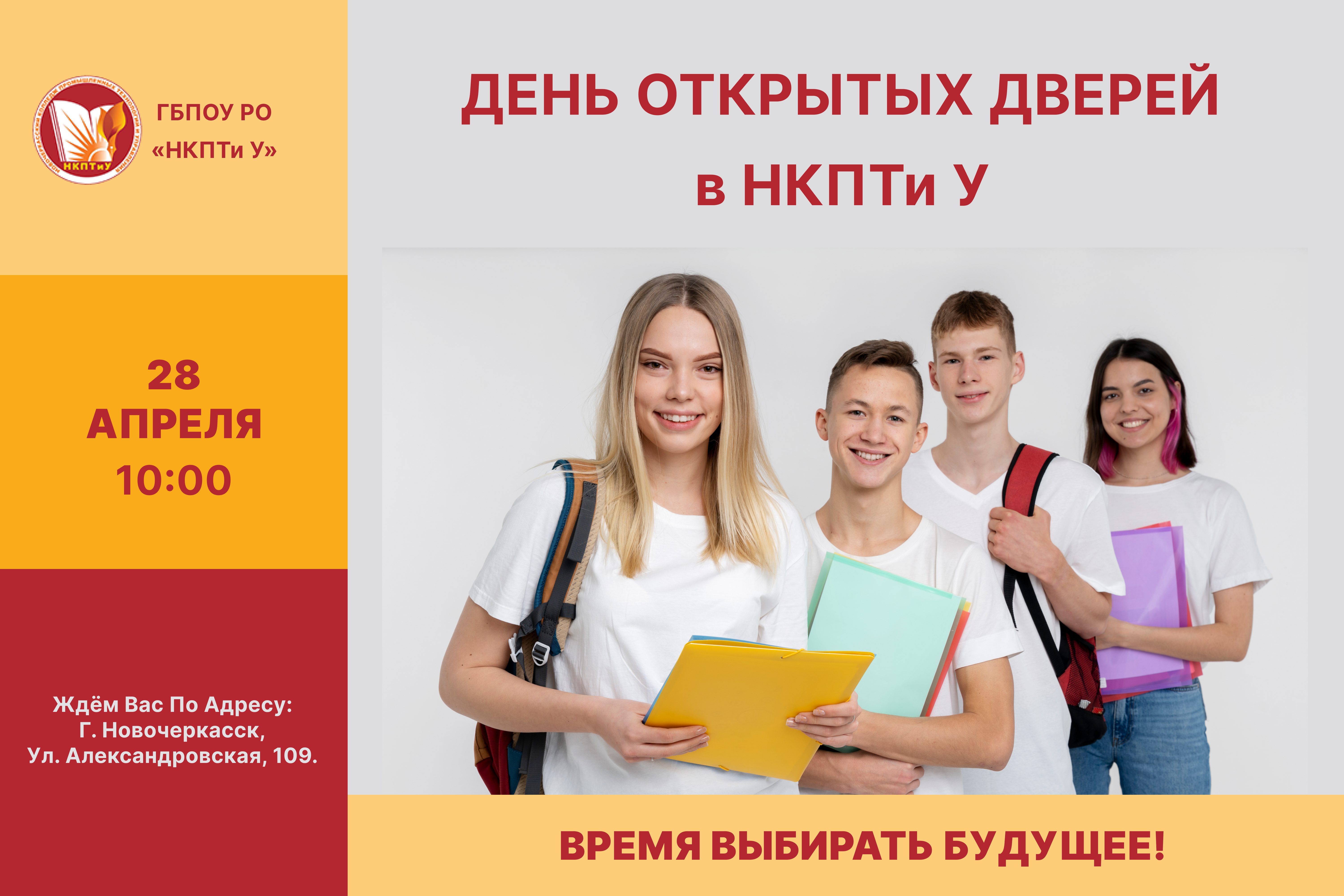 Новочеркасский колледж промышленных технологий и управления приглашает абитуриентов и их родителей стать участниками дня открытых дверей, который пройдет 28 апреля.