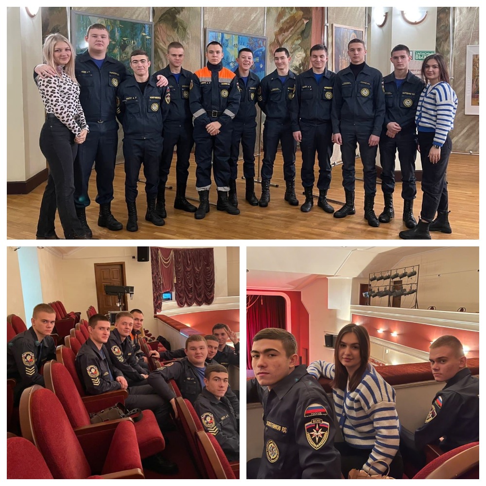 В рамках военно-патриотической работы ребята из группы Пб-201 вместе с классным руководителем Маргаритой Ковнацкой сходили в театр на спектакль «Вечно живые».