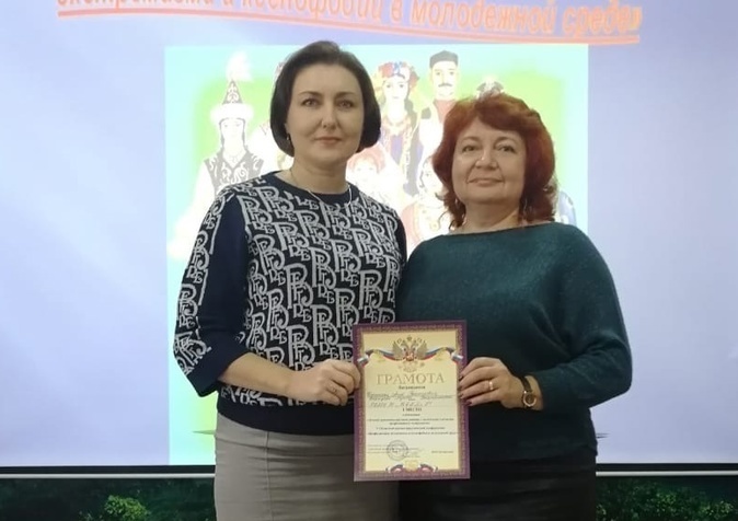 Наш колледж достойно представили руководитель социально-психологической службы Анна Киринская и преподаватель Лариса Иванцова. Они завоевали первое место в номинации "Лучший практический опыт с молодёжью в профилактики экстремизма".