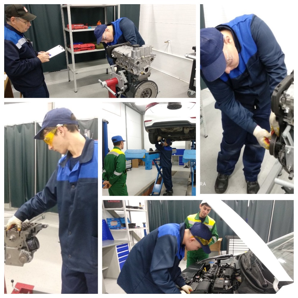 В автомастерских НКПТиУ находится новейшее оборудование. Всё выстроено таким образом, чтобы создать полное погружение в профессию. Здесь студенты показывают то, чему они научились в колледже. Всего в демоэкзамене три модуля: