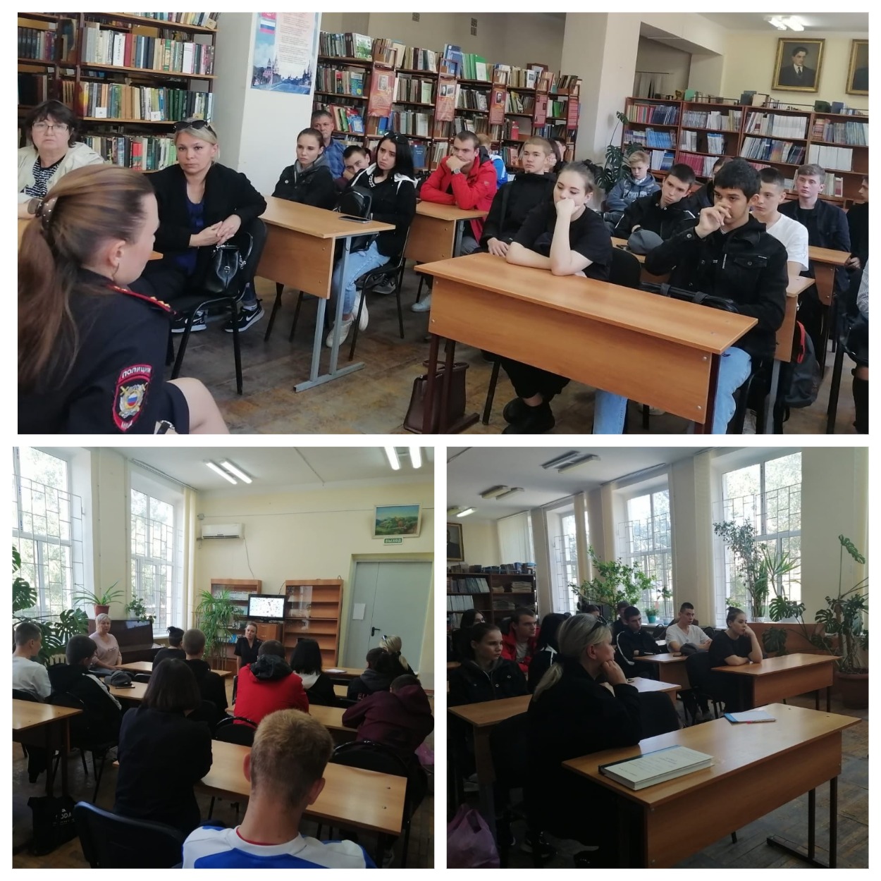 На мероприятие пригласили инспектора ПДН ОП-1 МУ МВД России «Новочеркасское» Юлию Лебедеву. Присутствовали также классные руководители, социальный педагог Наталья Корж и студенты, которые нарушили правила поведения в общественных местах и Устав колледжа.