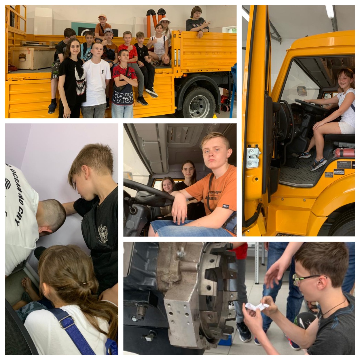 У каждой компетенции, по которой учат в НКПТиУ – своя мастерская: кузовной ремонт; ремонт и обслуживание легковых автомобилей; окраска автомобиля; обслуживание грузовой техники. Подростки познакомились с каждой. И со всеми заданиями квеста справились одинаков успешно – и девушки, и юноши. В заключение каждый посидел за рулём грузовика и сам завёл мощный двигатель. От такого не отказались ни девочки, ни мальчики!