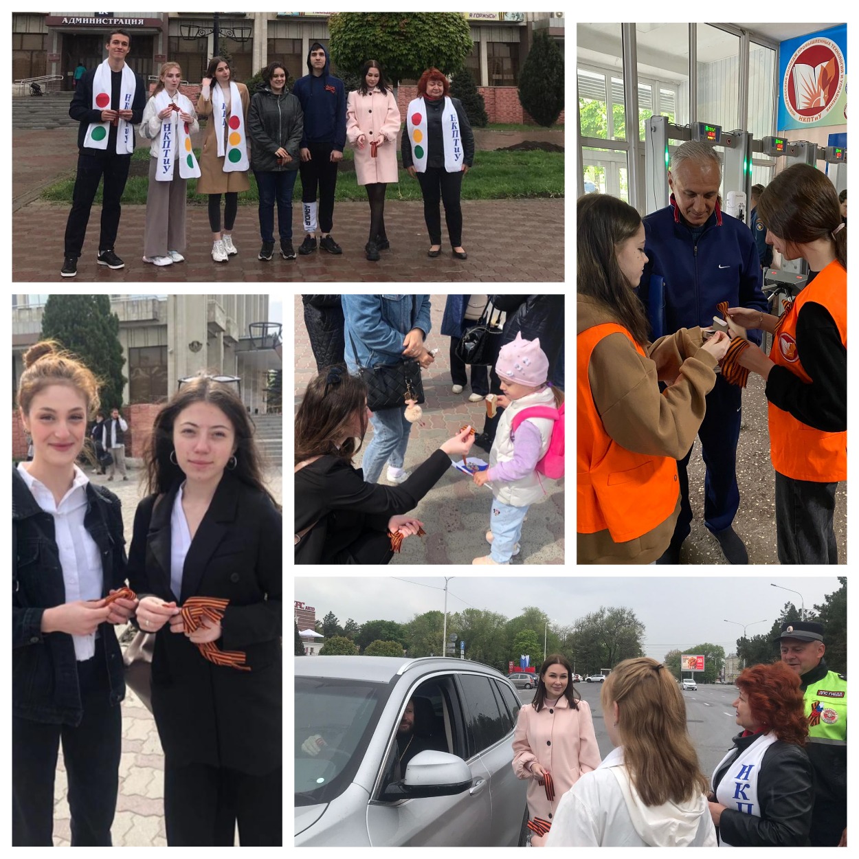 В период 4-6 мая в учебных корпусах активисты Союза активной молодёжи НКПТиУ приветствовали студентов, преподавателей и сотрудников, прикрепляя георгиевскую ленточку.