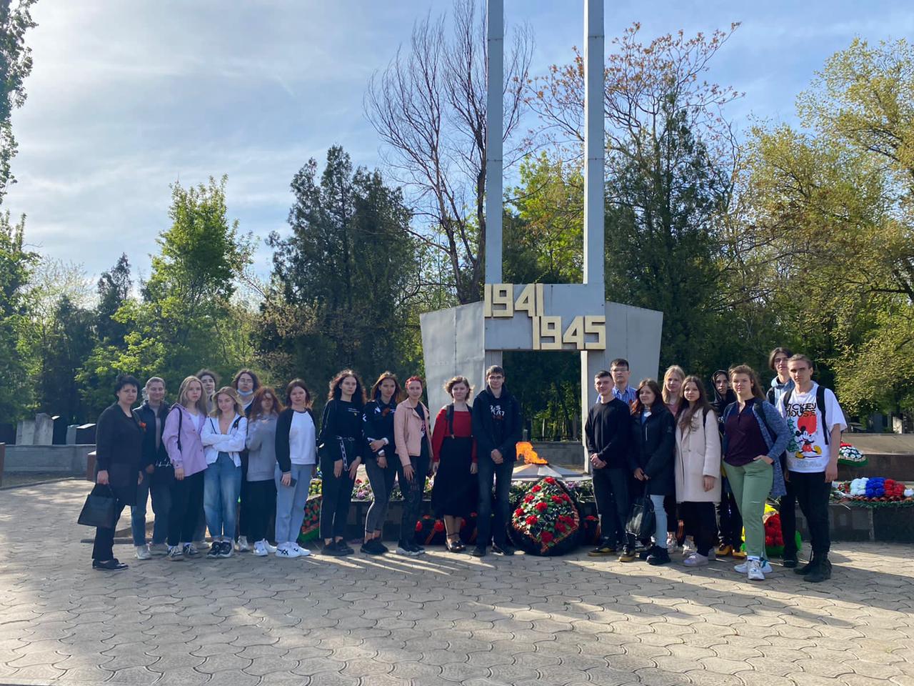 В мероприятии у мемориала Братской могилы воинов, погибших в годы Великой Отечественной войны, приняли участие более 40 студентов и волонтеров НКПТиУ.