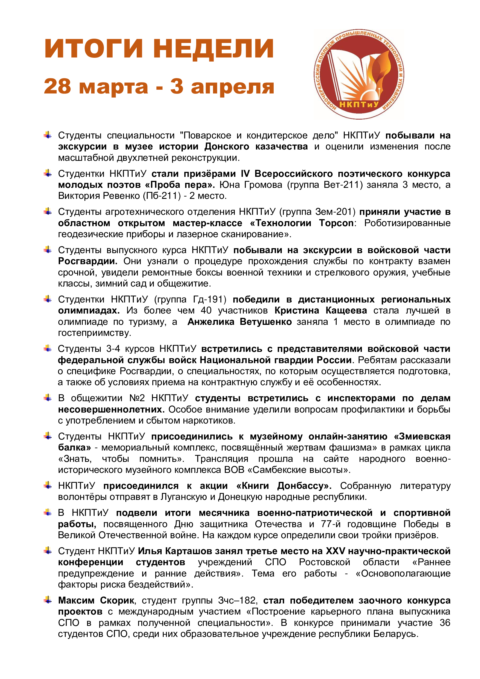 03.04.2022 ИТОГИ НЕДЕЛИ