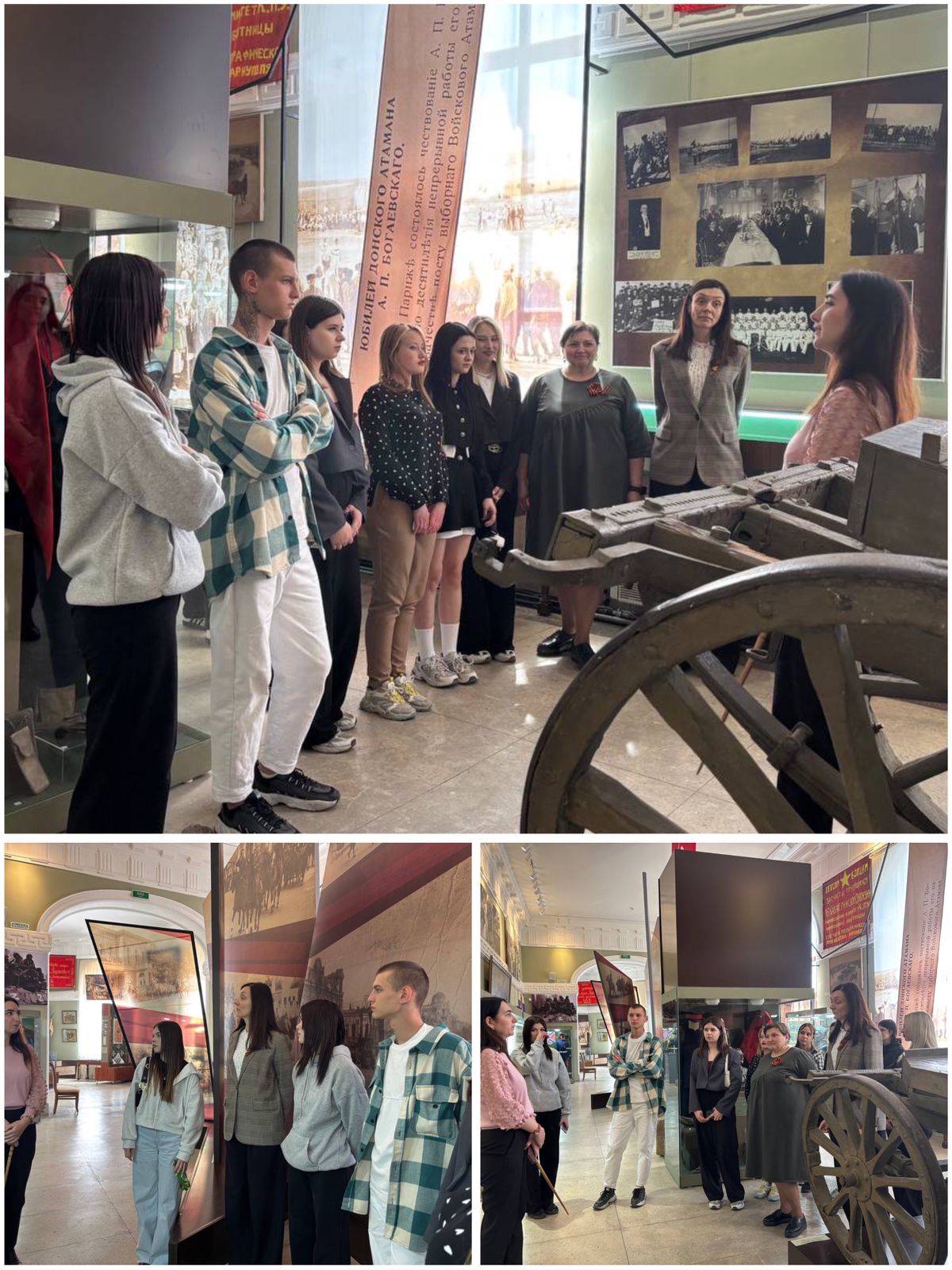 Ребята увидели экспонаты из Новочеркасского Суворовского военного училища и Новочеркасского высшего военного командного училища связи и фотографии Парадов Победы с 9 мая 1945 года до наших дней.
