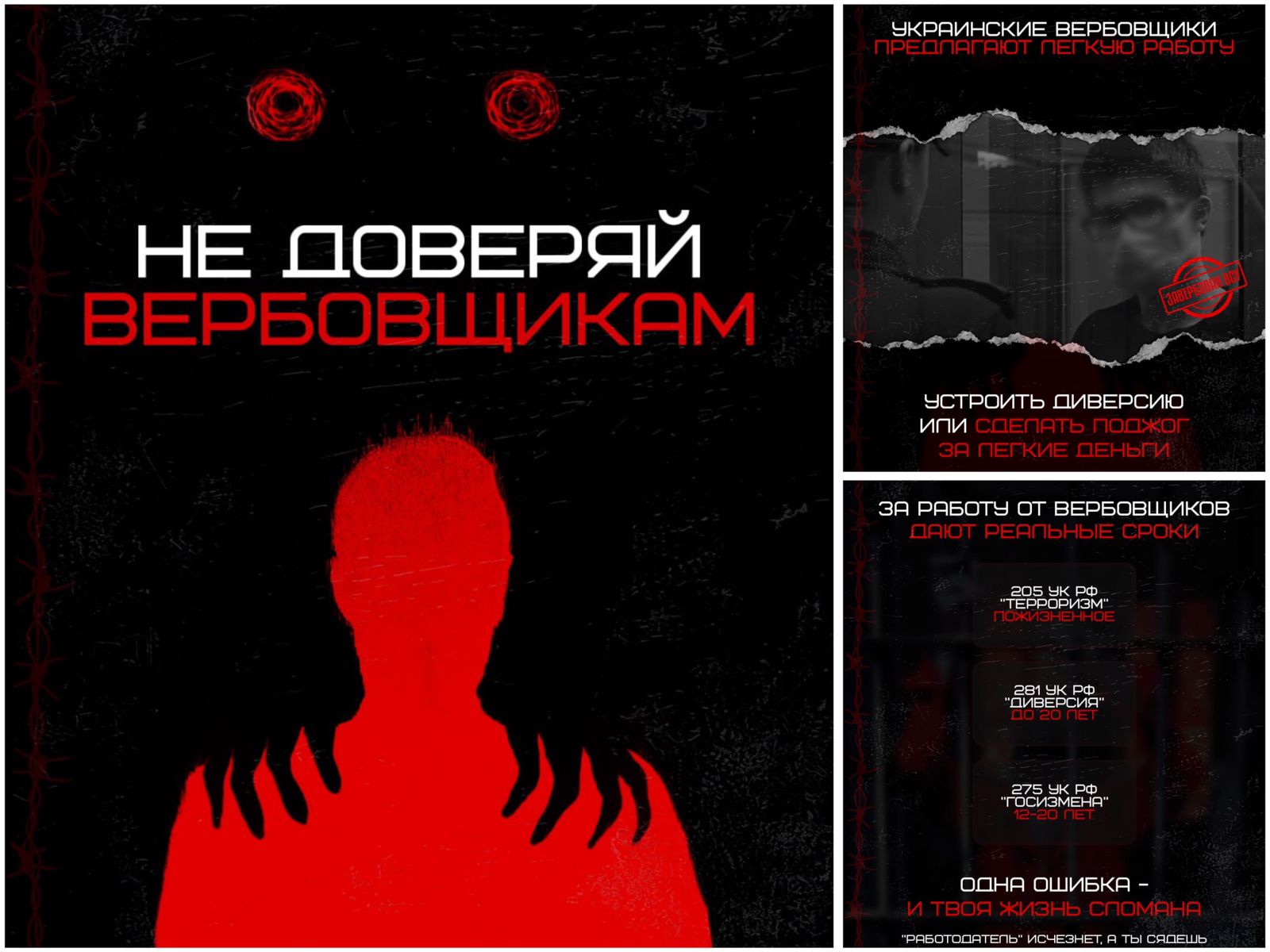 Соглашаясь на предложения вербовщиков, вы предаете свою Родину и семью. Провокации будут продолжаться, поэтому каждый должен быть настороже. Выгода и наказание несоразмерны — не стоит рисковать жизнью ради небольшой суммы.