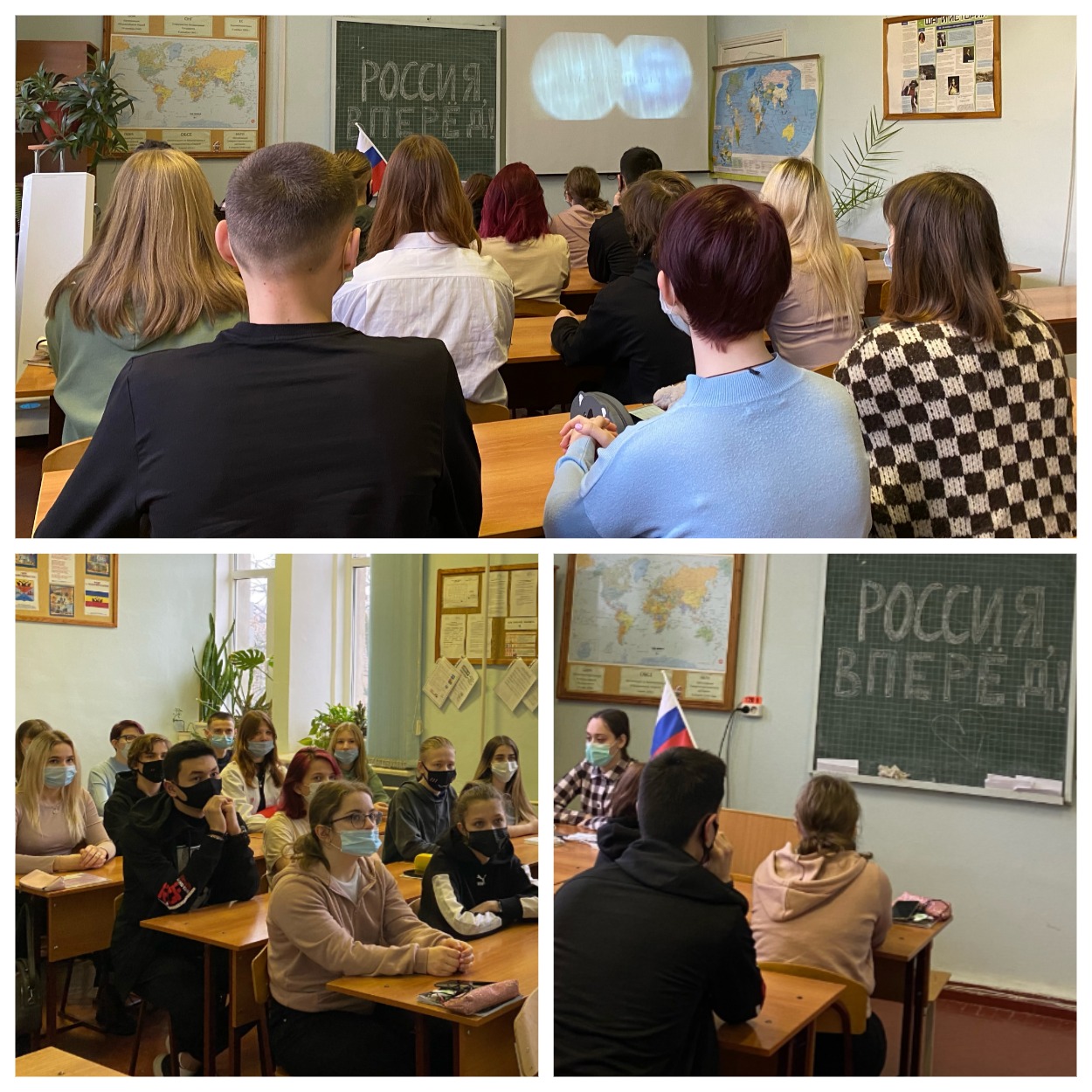 Мероприятие, приуроченное ко Дню защитника отечества, провели для первокурсников. Студенты 8 групп первого курса посмотрели фильм «Подольские курсанты».