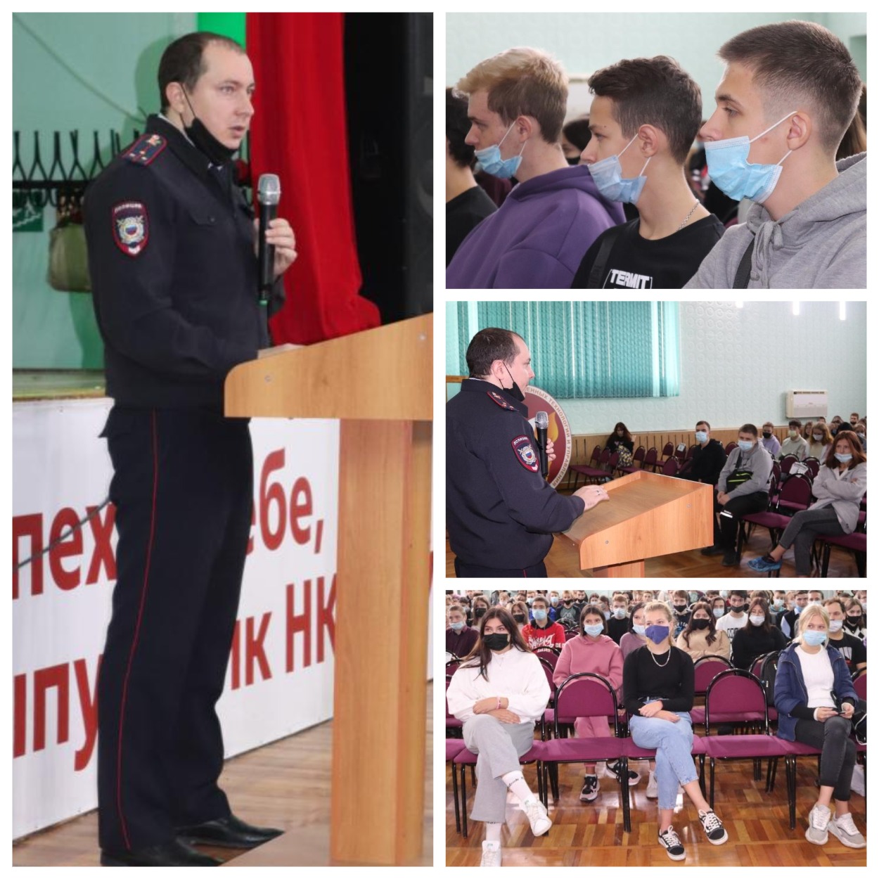 Чтобы помочь ребятам разобраться во всех требованиях законодательства, на большую встречу в актовом зале НКПТиУ пришёл старший лейтенант полиции, инспектор ПДН ОП-1 МУ МВД России «Новочеркасское» Александр Леонтьев.