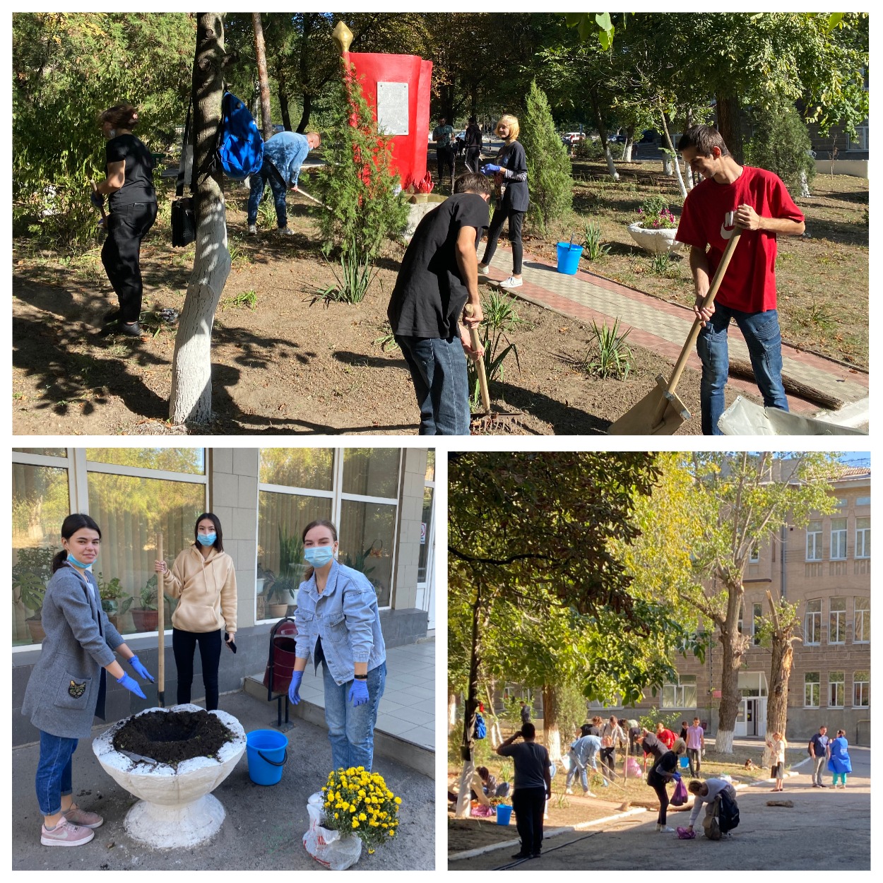 Осеннюю неделю благоустройства студенты и преподаватели отделений открыли ударно: очистили пространство от сорной растительности и мусора, окопали деревья, посадили кустарники и цветы.