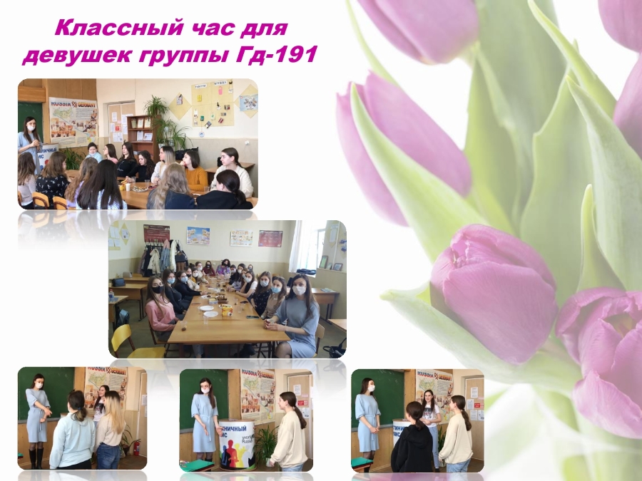 Классный руководитель группы Гд-191 отделения «Сервиса и туризма» Лавренко Нина Сергеевна всегда находит время для неформального общения со своими студентами. Канун 8 марта замечательный повод собраться с группой за круглым столом и организовать чаепитие. Несколько часов после занятий пролетели весело и с пользой. Все с радостью приняли участие в конкурсах: «Жест приветствия», «Танцы золушки», «Любит? Не любит?» Обсудили роль женщины в современном мире и просто получили удовольствие от приятного время провождения. Замечательно, когда педагог находит время просто отдохнуть со своими студентами.