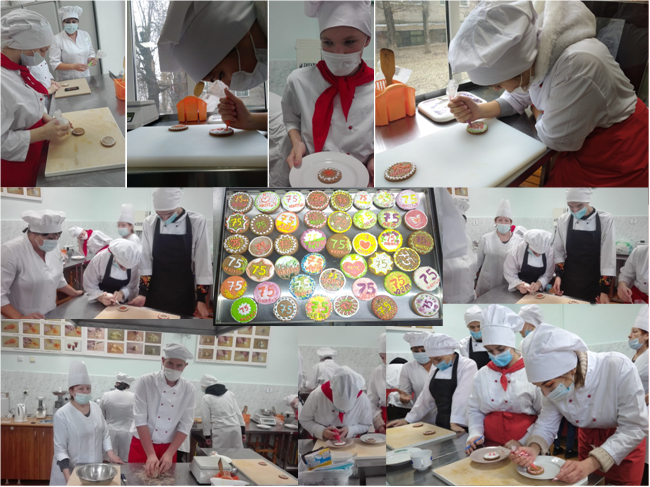 03.12.2020 г. в учебной кулинарной лаборатории состоялось открытое внеклассное мероприятие в формате бинарный тематический классный час «Юбилейный пряник!». Под руководством преподавателя Резвой Натальи Анатольевны и мастера производственного обучения Богдановой Юлии Викторовны студенты гр. Пк-191 и Пк-201 окунулись в кондитерское творчество через познание изготовления имбирных пряников. На мероприятии было всё: экскурс в историю приготовления, приправленных специями медовых лепёшек, первое упоминание о которых датировано 350 г. до н. э. ещё в Древнем Египте, до современных тенденций технологии приготовления и декорирования современных рождественских пряников. Безусловно, в канун празднования 75-летнего Юбилея нашего колледжа, главной творческой идеей было – отработка эскизов оформления имбирных пряников для юбилейной презентации и дегустации.