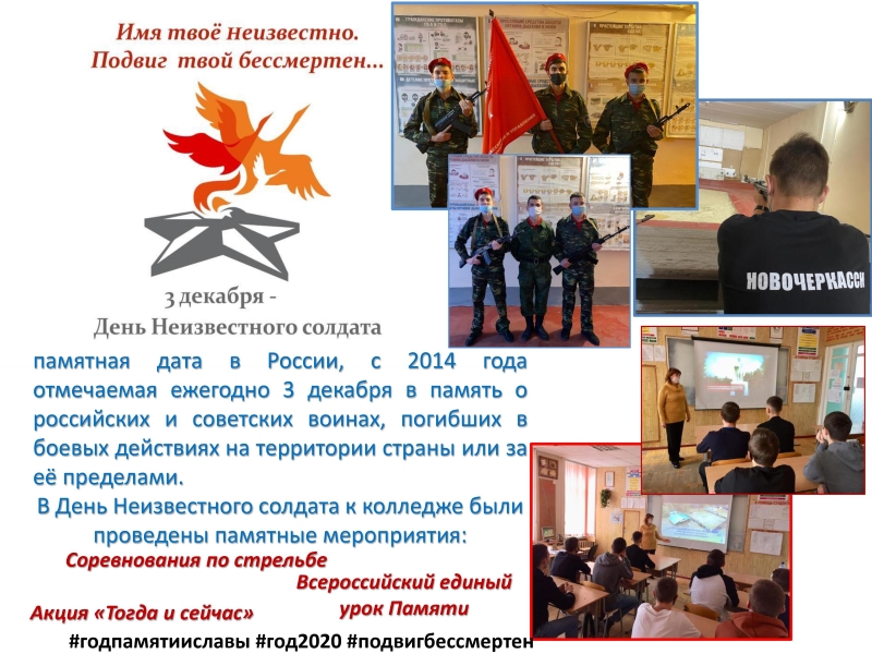 9 декабря в День Героев России в колледже прошел Всероссийский урок памяти под девизом «Имя твое неизвестно, подвиг твой бессмертен».