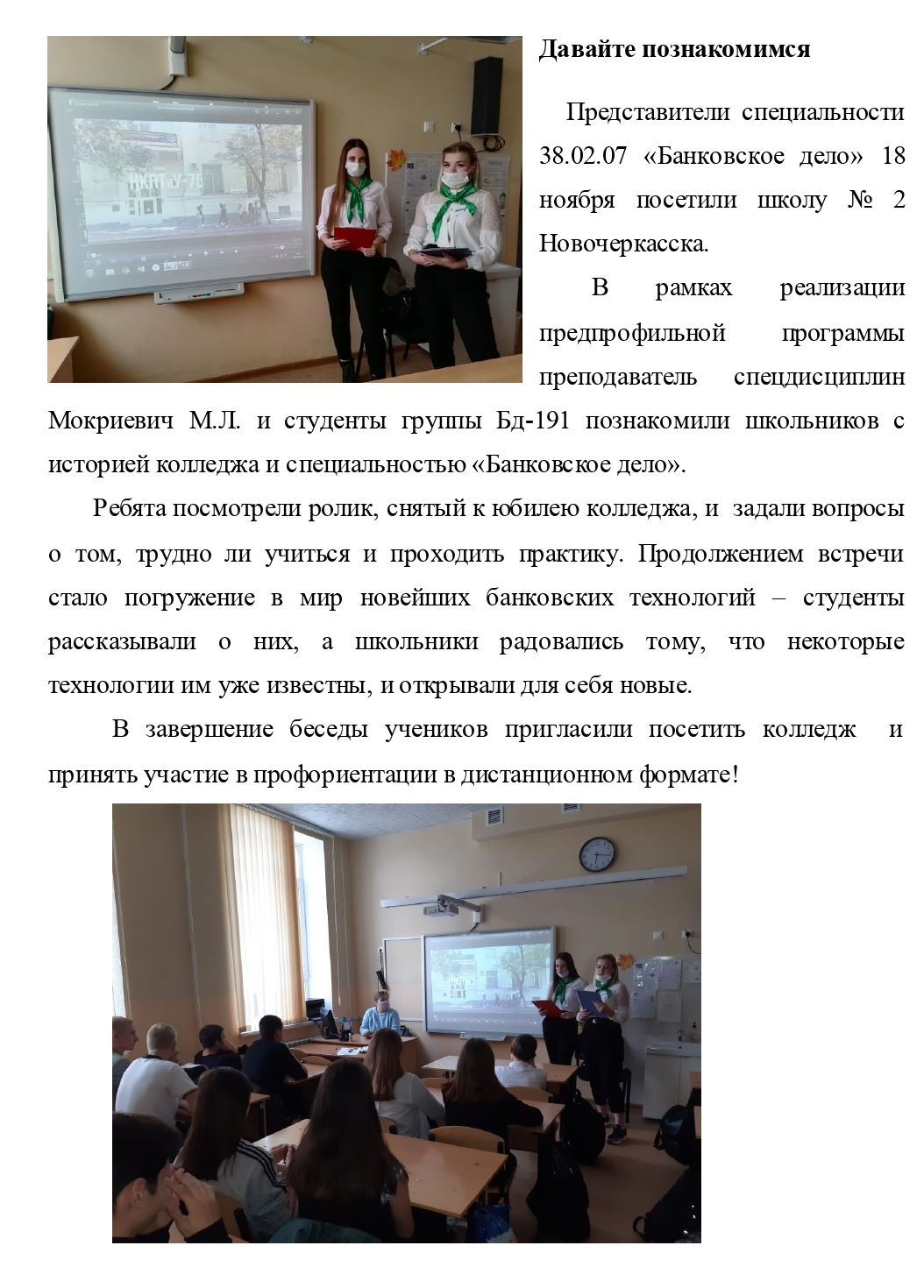 19 ноября студенты-спасатели добровольной пожарной команды "ДонСпас" «Новочеркасского колледжа промышленных технологий и управления», совместно с инженером группы профилактики пожаров 5 ПСО ФПС ГПС ГУ МЧС России и работниками ВДПО г.Новочеркасска провели профилактические мероприятия для учащихся дошкольных образовательных учреждений. В ходе мероприятия проведена беседа о соблюдении правил безопасного поведения в зимний период, показаны мультфильмы на противопожарную тематику, а так же вручены раскраски и памятки для обновления уголков пожарной безопасности.
