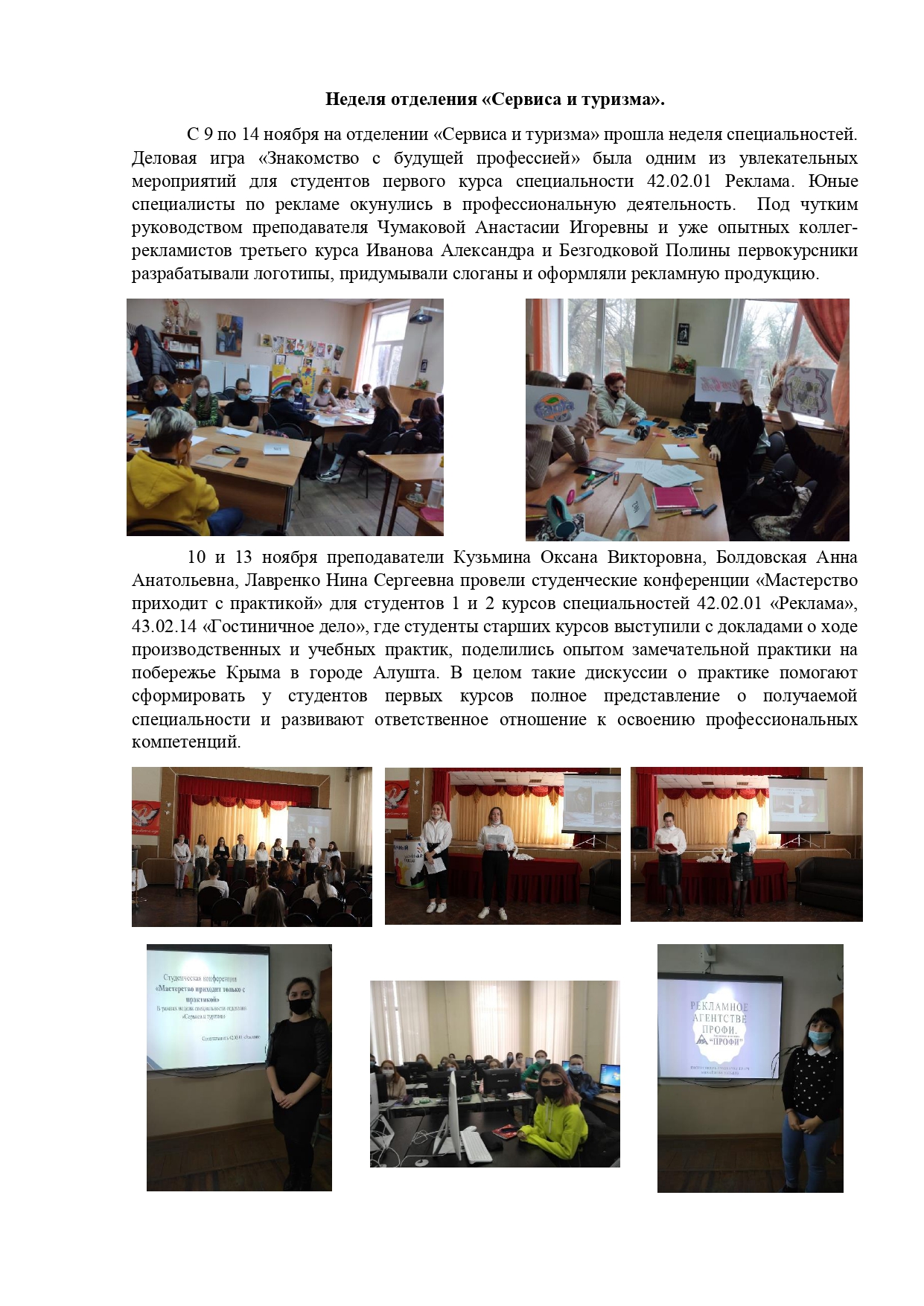 20.11.2020 Неделя отделения «Сервиса и туризма».