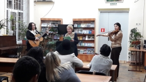 2 ноября заседание клуба «Собеседник» было посвящено Международному дню музыки. На встречу к студентам колледжа пришли музыканты Татьяна Воронина, Вера Шишова, Нина Громакова, балерина Александра Конькова, поэт Елена Мезина.
