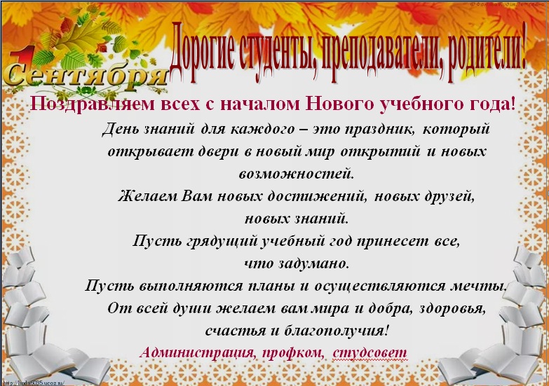 С новым учебным годом студентов и преподавателей поздравили директор колледжа Григорьева Галина Николаевна.