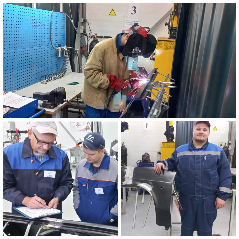 Студенты третьего курса специальности «Техническое обслуживание и ремонт двигателей, систем и агрегатов автомобилей» НКПТиУ сдают демонстрационный экзамен по компетенции «Кузовной ремонт».