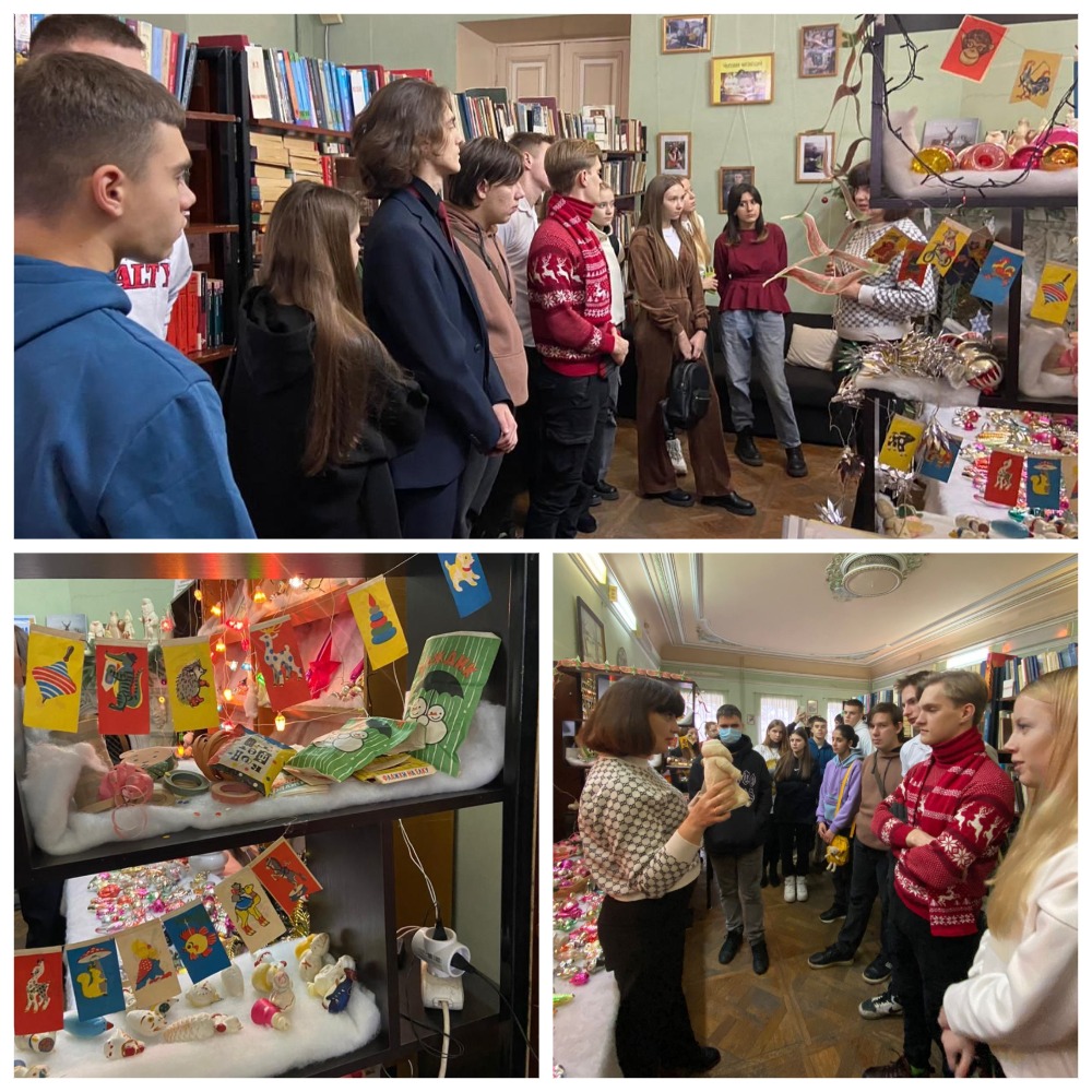 В преддверии Нового года студенты НКПТиУ вместе с преподавателем Павлом Посыпкиным посетили отдел «Юность» Центральной городской библиотеки им.А.С.Пушкина, где распахнул свои двери «Музей елочной игрушки».