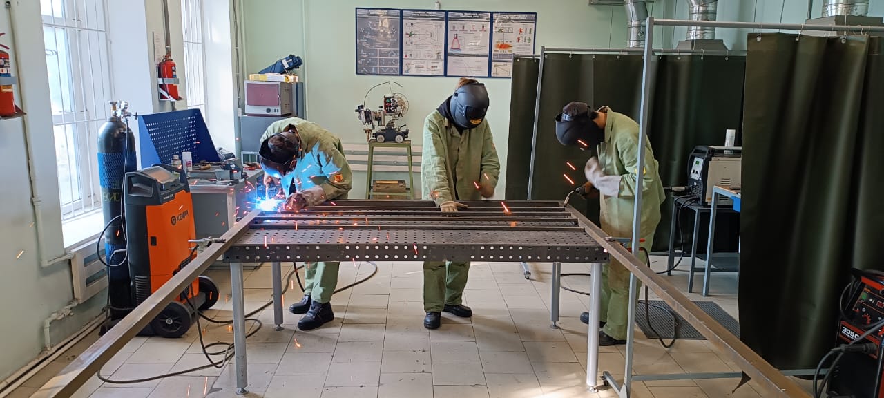 В рамках учебной практики третьекурсники специальности «Наладчик сварочного и газоплазморезательного оборудования» сварили и установили въездные ворота для главного корпуса НКПТиУ.