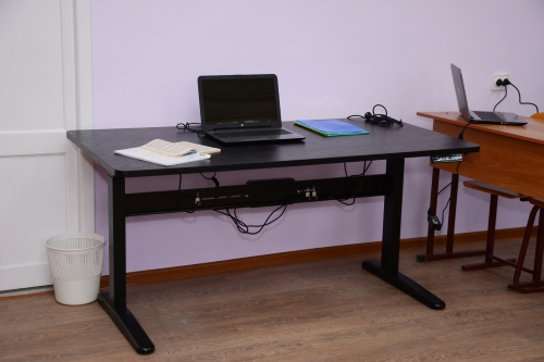 В учебных помещениях (в учебных кабинетах и лабораториях, библиотеке и др.), в которых согласно учебному плану (индивидуальному учебному плану) и расписанию занятий обучаются инвалиды и лица с ограниченными возможностями здоровья оборудованы 1-2 места для студентов-инвалидов с нарушением опорно-двигательного аппарата (увеличен размер зоны на одно место с учётом подъезда и разворота кресла-коляски, увеличена ширина прохода между рядами столов), нарушениями слуха и зрения.